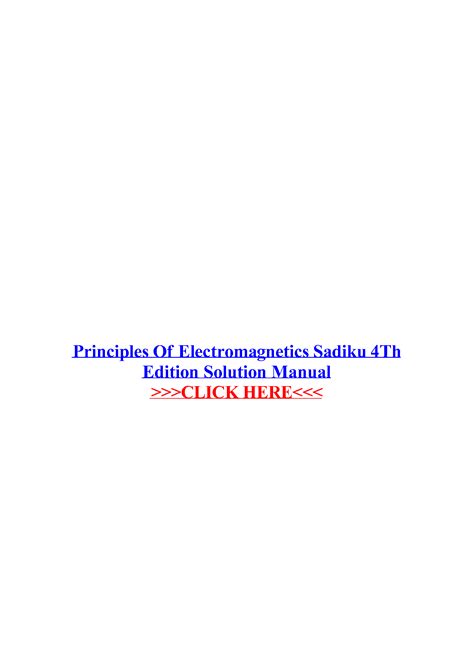 Read Online PRINCIPLES OF ELECTROMAGNETICS SADIKU 4TH EDITION SOLUTION EBOOK DOWNLOAD FREE PDF PDF